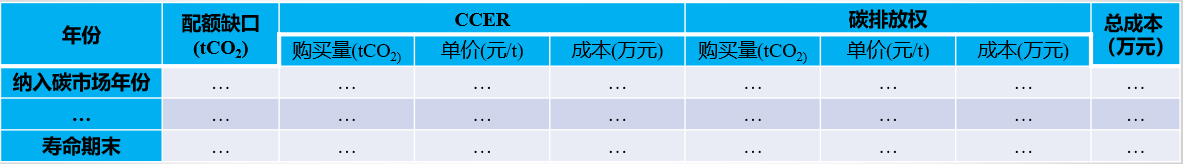 考慮合理利用國家核證自愿減排量(CCER)作為清繳配額,控制履約成本。逐年計算項目碳排放產(chǎn)生的費用或效益:
